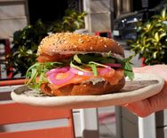 Con queso crema, cebollino, cebolla encurtida, tomates asado...