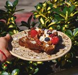 Yogurt griego, granola casera, frutas de temporada, coulis d...