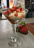 Copa de crema de mascarpone,fresas y crujiente de almendras y chocolate